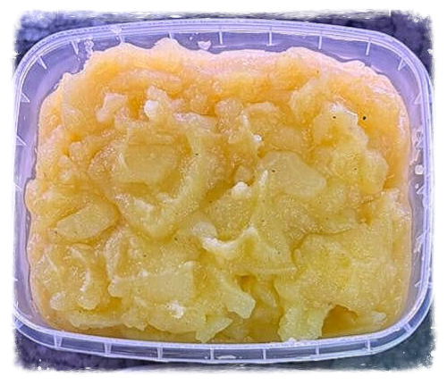 Zutaten: Speisekartoffeln, Gemüsebrühe (Pflanzlich) Pflanzenöl (Raps), Weinbrandessig (Kräuteraroma, Farbstoff E150d, Konservierungsstoff Kaliummetabisulfit), Speisesalz, SENF, Speisewürze, Zucker, Geschmacksverstärker (Natriumglutamat) Gewürze, Würze (SELLERIE)